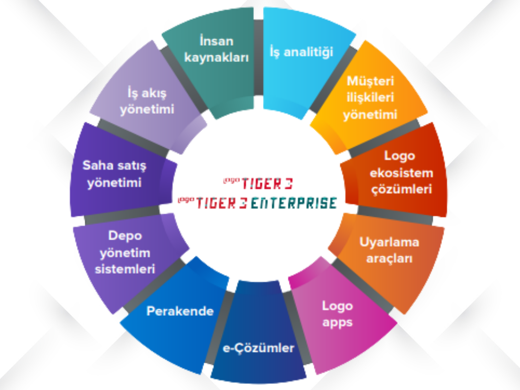 Orta ve büyük ölçekli işletmelerin tüm Kurumsal Kaynak Planlama (ERP) ihtiyaçlarını karşılamak üzere geliştirilen Logo Tiger 3 ERP Çözümleri, işletmenize hem kendi içindeki gelişmiş fonksiyonelliği hem de App-in-App teknolojisi ile eklenebilen yeni modüller sayesinde uçtan uca bir yönetim deneyimi sunar. Farklı sektörlerde faaliyet gösteren şirketlerin tüm iş süreçlerini verimli ve etkin yönetmesini sağlayan bu çözümler, veri yönetiminden satış operasyonlarına kadar her alanda zaman ve maliyet tasarrufu kazandırır.